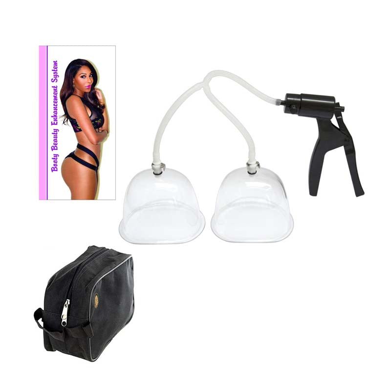 Booty Beauty Buttock Enlargement System Buttock enlargement vacuum devices designed to increase the size and firmness of the butt. The use of butt enhancement pumps is a safe process. This product consists of two cups which cover each buttock and a manual pump which is connected to the cups by soft silicone tubing. How Does It Work? Based on the principle of “Tension Induced Tissue Growth” this system uses a specially “butt-contoured” vacuum cup and a hand pump to simply and effectively enlarge your buttocks. The tubing is connected to the butt cup using the special airlock connector and then the cup is placed on the main part of the buttock. The hand or foot pump is pressed gently several times and a vacuum is formed causing the buttock to enlarge, firm up and fill the cup. Once the buttock is pumped up, the airlock is easily disconnected leaving the cup in place. The whole process takes seconds! Then the other cup is fitted to the other buttock and the same process followed.